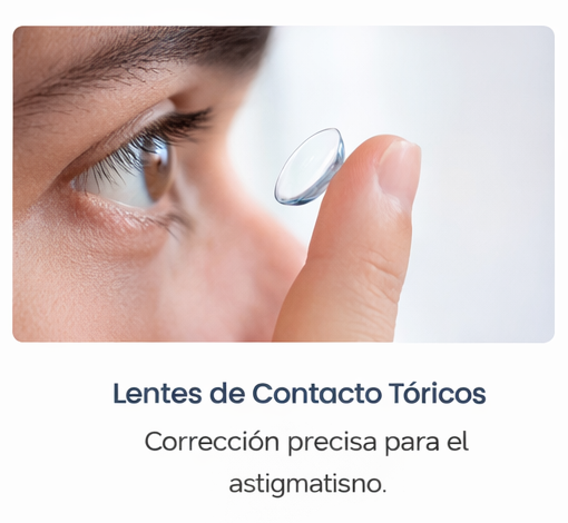 Los lentes tóricos están diseñados específicamente para corregir el astigmatismo, proporcionando una visión estable y clara. Su correcta adaptación es clave para evitar visión borrosa, fatiga visual y molestias durante el día.
