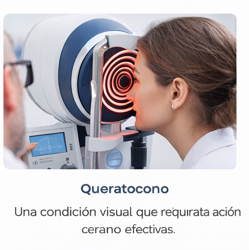 Los más comunes son: Cambios frecuentes en la graduación Visión borrosa o distorsionada Sensibilidad a la luz Deslumbramiento al manejar de noche Dificultad para ver claramente aun con lentes nuevos Si presentas uno o más, es recomendable realizar una topografía corneal para descartar queratocono.