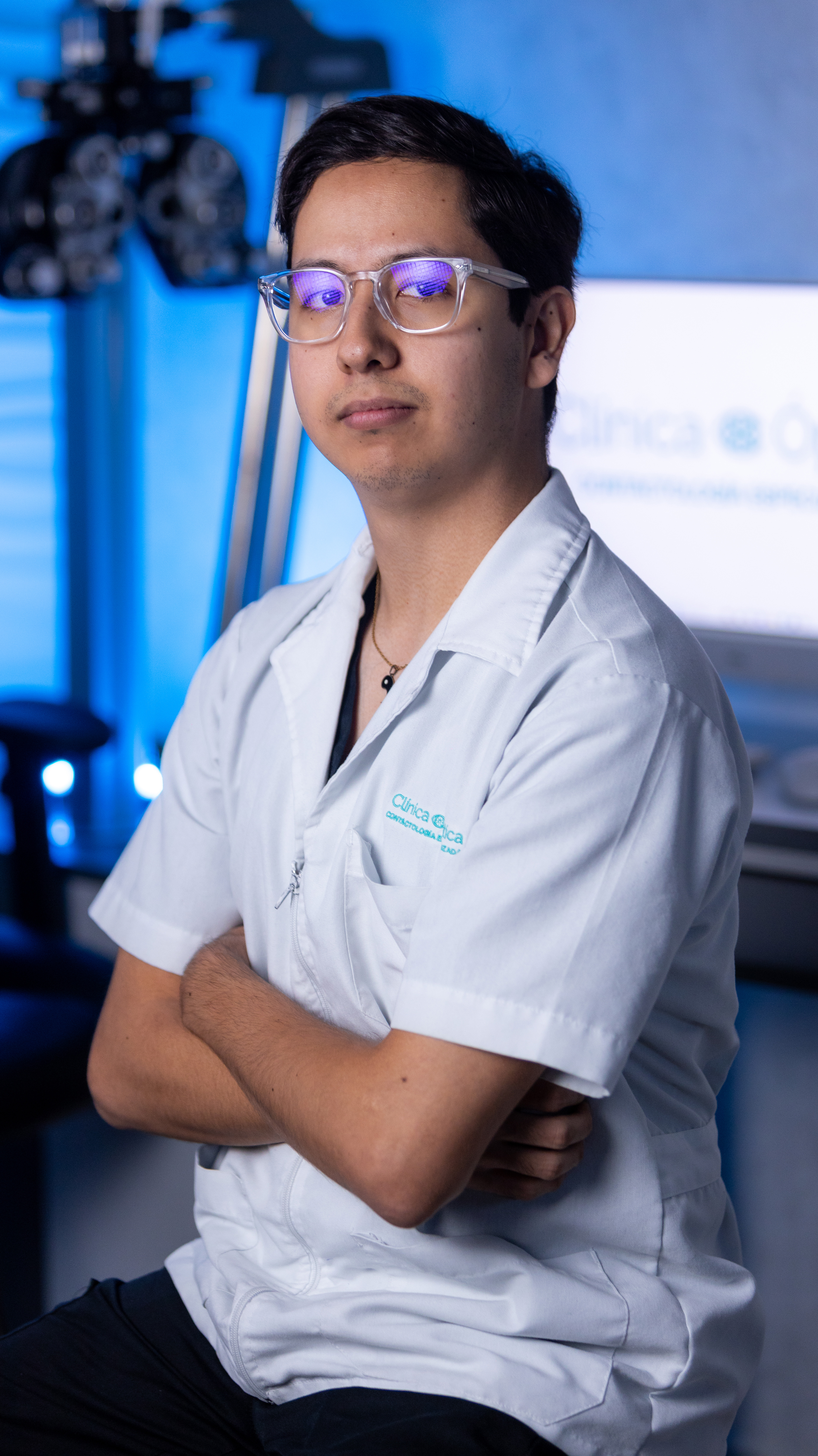 Optometrista enfocado en evaluación visual, adaptación de lentes y atención cercana al paciente, brindando soluciones visuales precisas y seguimiento profesional.